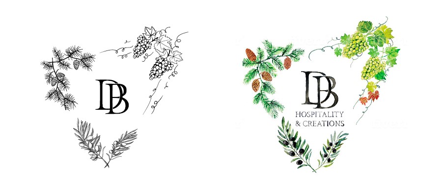 V levem primeru gre za logotip, ki je bil narejen izključno digitalno. Desni logotip je bil najprej naslikan z vodenimi barvicami in šele nato digitaliziran in spremenjen v vektorsko obliko zapisa.